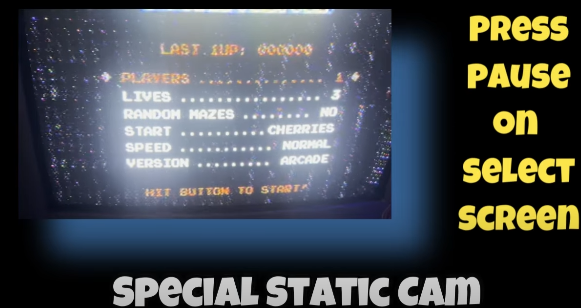 This game is literally made twice as cool and twice as exciting with just one simple to use code. While playing the game with the dip switches aligned to the 7800 version of Pac Man Double Feature, go to the select screen and hit the pause button. This MAGICALLY allows you to have all of the 7800 options for the 1981 Atari 2600 version of Pac Man. This includes Random Mazes (!), Speed Boost (kinda), level select and you can choose between 3 lives or 5. Because of the wide aspect ratio of the 2600 version of the game, the mazes for the 1981 portare much more interesting and dangerous.