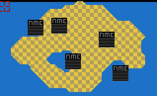 What We Gotz Here: Rampart is a hybrid game broken up into three parts. It is a medieval affair, so we are, of course, involved in an invasion of some sort. This time, by sea. During part one, we must construct our castles with Tetris style blocks. If we are successful in completely surrounding a castle with walls with solid partitions, we then get to place our cannons around inside the castle walls. Phase 3? We fire away with cannon ball glee at the approaching ships as they fire back at us. Then we must repair our walls, re-build and continue the cycle. If we survive enough rounds, we clear the level. Onto the next map. The 7800 prototype was canned in its early stages, so there's not much to do here. The familiar 7800 menu is fully functional, complete with our ubiquitous difficulty options (novice, intermediate, advanced, expert) and there is a 2 player option... wait... what's this? A competition mode??? Whoa! What is that about? The 7800 had great two player options... I would have loved to have seen that. But when you try to do anything else is... its just trippy. The screens look good, the terrains are yellowish and brown checkerboards, but giant gray boxes filled with horizontal lines and the letters "NME" float aimlessly around the screen. "NOT MY EMPEROR!" "NICE MUSKRAT EGGS!" "NICKI MINAJ EXERCISE!" Who knows? You can move a reticule around, and a simple button press causes everything on the screen to explode. Congrats. You just won the easiest video game of all time. Back to the menu screen with your ass. If you keep up this process you can see all eight boards... even a swell island. There's only one sound effect in the game, and that's on the menu screen. Bloop.